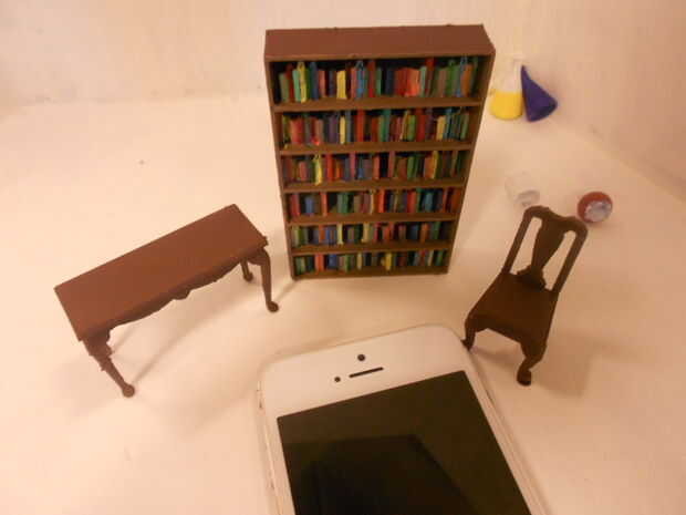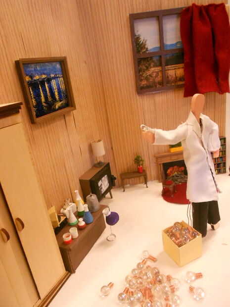 Para equipar el laboratorio de Edison, pintar el piso con pintura blanca - pero usted puede elegir lo que desea. Atamos cintas de madera a la pared para que se vea como una antigua sala de moda. Con la impresora 3D, usted puede imprimir los muebles para la sala - una mesa del pasillo, sillas antiguas, un caso de libro, un televisor y una chimenea. El original. Se encontró el archivo STL en Thingiverse.com no te olvides de cambiar el tamaño para caber el tamaño de la habitación. Vuelve a calcular el tamaño de los muebles por lo que todas las longitudes de cada objeto no exceda de 5 pulgadas.
