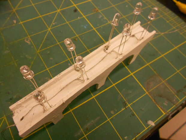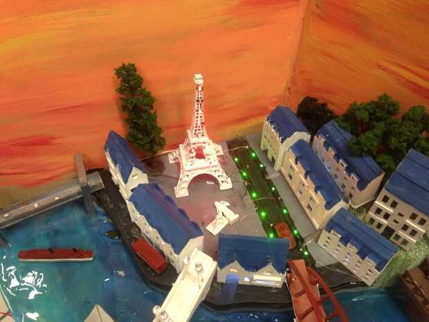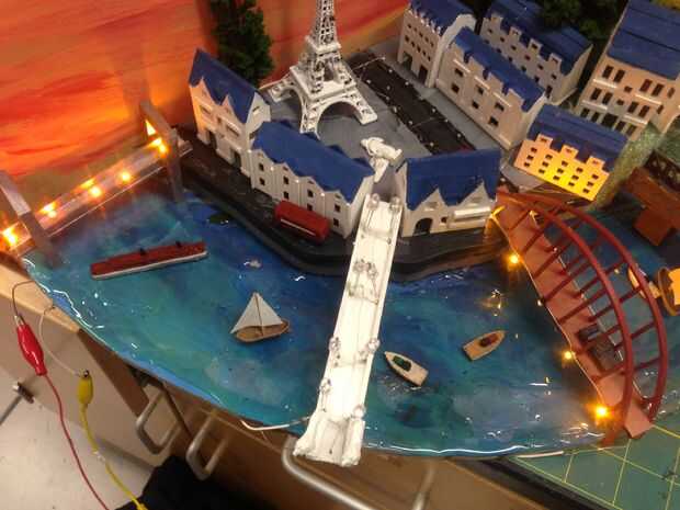 Coloque todos los componentes sustanciales según la referencia de La seine y conectar cada uno de los LEDs. uno es para todos los edificios, farolas y la Torre Eiffel. Línea dos para todos los puentes. Línea de tres para la rueda ferrys.