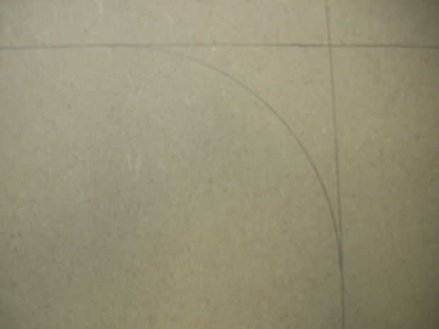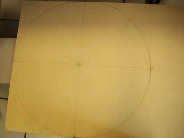 el diámetro del círculo es de 24 pulgadas. miden 24 pulgadas desde el borde de la longitud de la Junta y la marque en ambos bordes. Luego marque el centro mediante la medición de 12 pulgadas de longitud de un extremo sabio en ambos bordes del tablero y 12 pulgadas anchura sabio en ambos bordes. Luego trace una línea a través de usar una regla sobre las marcas de longitud sabio. luego trace una línea recta por la mitad de la parte larga de la Junta usando las marcas sabio de ancho. Trace una línea en las marcas de 24 pulgadas realizadas anteriormente. Ahora, con el centro marcado en la Cruz puntos que sólo en el de 12 pulgadas marca punto. Ate una cuerda (12 pulgadas) para el lápiz y poner un extremo en el punto central y el lápiz en el borde del tablero. Manteniendo la cadena apretada dibuja un círculo alrededor de la mitad.