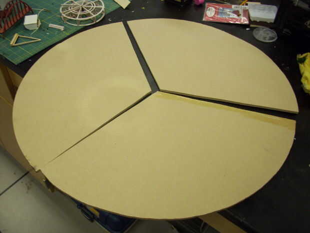 5) cortar el círculo utilizando la Sierra de buzz y luego cortar cada una de las divisiones de 120 grados