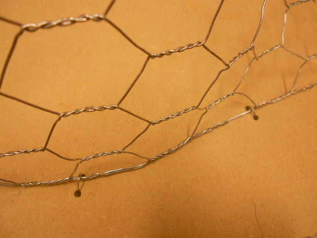 Perforar y cortar tiras de alambre para fijar el cable de pollo a la Junta. Tuerza el alambre en la parte inferior de la estructura para mantener en su lugar.