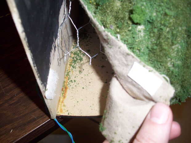 Posición de Franklin donde usted quiere que él en la colina y corte dos pequeños agujeros en la tela de la colina donde desea que sus cables para pasar a través. Además, haga una marca en la pared posterior donde desea colocar su alambre de soporte. (Necesita el apoyo de alambre a Párate derecho!) Taladre cuatro agujeros en la parte posterior de la pared: uno para el cable de soporte de Franklin y dos donde quieres los cables para pasar a través de la parte posterior para el Arduino. Guía de los cables blancos a través de los orificios de la Arduino. Para el alambre de apoyo, hacer un soporte en forma de L para unir a la parte trasera de Franklin y empujar el alambre a través de su capa. Pase ese mismo cable a través de la pared y asegúrelo en el otro lado ya sea con pegamento o cinta.
