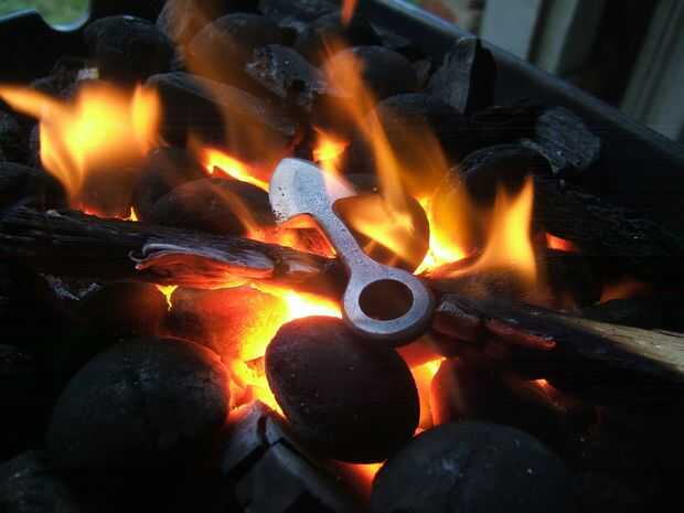 Impulsar la fragua (sí por fin conseguí una fragua, YESSSS!!!) y la clave de red agradable de calor. Un buen truco es poner sal en la hoja. Una vez que derrite puede está a la temperatura adecuada y sacia en aceite (motor limpio).