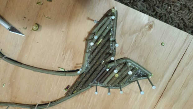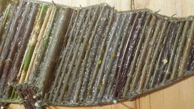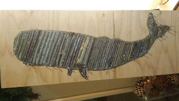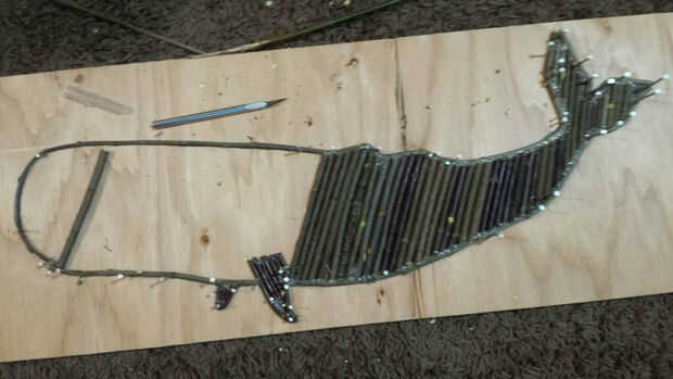 Recuerde: la parte superior de la ballena (vista superficial) será la parte de atrás del diseño así que usted puede Agregar tanto pegamento que quieras que utilicé unos 20 palos (pequeños).