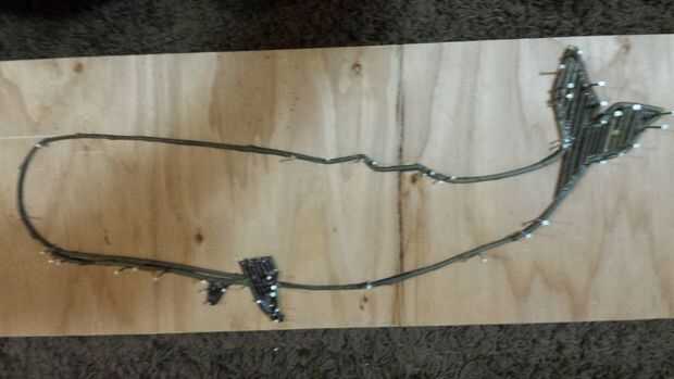 Trata de escoger un ángulo para que la dirección de las ramas van a ser a lo largo de la ballena entera (vertical, 35 grados, horizontal, etc.) Comience en un extremo corte todas sus piezas una por una instalación y ajuste. (esta parte le llevará un rato lo tiro en una película o unos buenos tunage y tómate tu tiempo) Alternado con el tamaño y los colores como iba, sugiero utilizar a la podadora para obtener el corte áspero y afinando con el cuchillo del exacto o cúter y usando la pistola de pegamento para fijarlos en el camino, agradable y apretado ;) Una vez todo hecho, lleno en todos el abrir los agujeros y grietas con pistola encoladora y luego apliqué el el pegamento ultra bond en la parte superior (esto era evitar que el pegamento líquido que se filtra a través del otro lado.