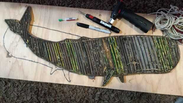 Logrado el pegamento estaba usando espuma entre las ramas (me debo haber faltaron algunos puntos con mi pistola de pegamento), usé una mini antorcha para añadir un efecto de quemado aspecto que añade un montón de carácter y oscureció el pegamento que era visible y consiguió deshacerse de todas las cadenas de pegamento (carful no para derretir el pegamento que sujeta las ramas juntas aunque jajaja) luego añadí los detalles utilizando cuerda de cáñamo y un botón con el pegamento loco y un gancho en la parte trasera con dos tornillos pequeños (dos orificios piloto para prevenir el agrietamiento de las ramas.