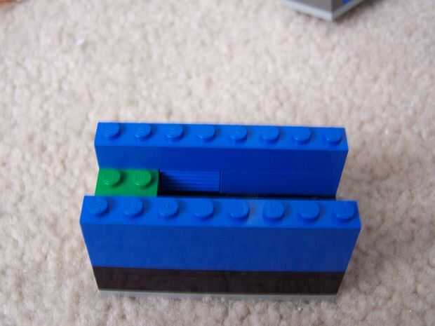 .Paso 1: Consiga dos 1 x 16 ladrillos con agujeros en ellas y poner azulejos de más de 11 postes de madera en cada ladrillo.Paso 2: Sujete.Paso 3: Haz dos 1 x 6 ladrillos con agujeros y colocar conectores técnica 7 en los orificios mostrados.Paso 4: