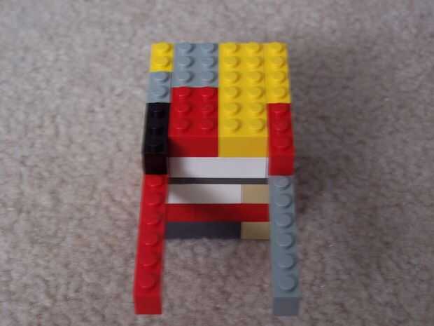 esta es la secuela a mi ballesta A1 menor. Esta ballesta es mucho más potente, porque pueden tirar 30 + pies (dependiendo de la rbs), puede abollar cartón (tenga en cuenta, es lego, KVG no afilada) y es muy exacto. La única pega es que esta ballesta