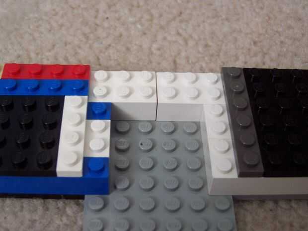.Paso 1: Consiga dos 1 x 16 ladrillos con agujeros en ellas y poner azulejos de más de 11 postes de madera en cada ladrillo.Paso 2: Sujete.Paso 3: Haz dos 1 x 6 ladrillos con agujeros y colocar conectores técnica 7 en los orificios mostrados.Paso 4: