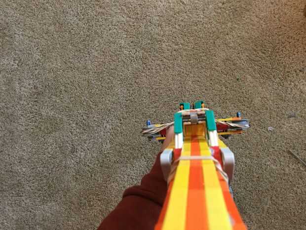 El escorpión utiliza bandas de 18 y la banda equivalente acerco de una Srv-1 en algo el tamaño de los 3 Zip (el escorpión es 32,5 pulgadas de largo) para disparar 200 ft +!