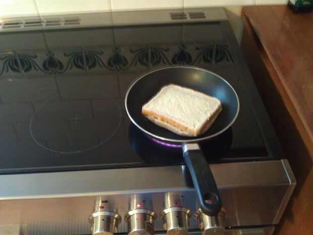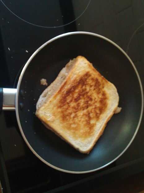 [Nota: una sandwichera también puede ser utilizado para este paso (que prefiero), lamentablemente mi casa actualmente carece de ese departamento.]