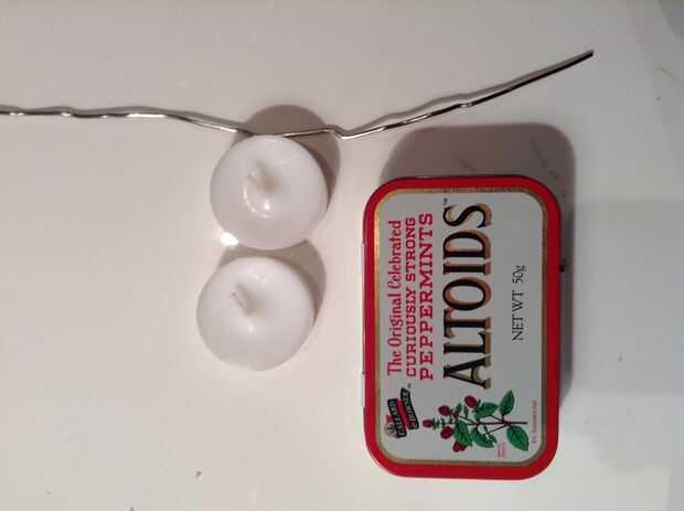Aquí es todo lo que necesitas para este instructable:. Una percha de alambre. Dos pequeñas velas. Una lata altoids. Partidos y delantero (opcional). Cinta adhesiva para conductos (también opcional). Pegamento caliente herramientas:. Dremel. Pinzas. Pistola de pegamento caliente