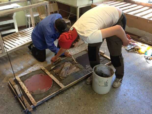 Entonces comencé a construir en el marco para el concreto con agujeros de tamaño de los agujeros donde encajan. El agujero para el tablero de corte es hecho por dos capas de madera. En el mismo tamaño que el tablero de corte y uno un poco más pequeño. Quería ser vacía debajo de la corte para ahorrar algo de peso.