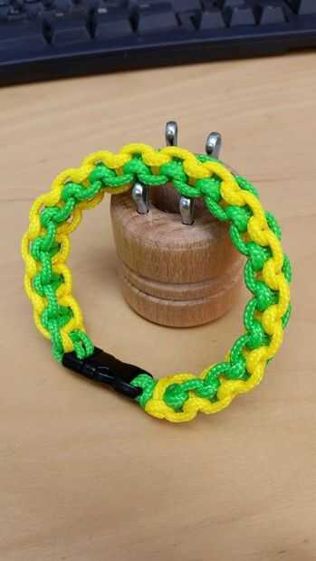 Esto tendrá 9 pies de cada cuerda, una hebilla y mejor es atado sobre un jig.