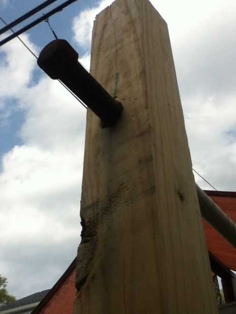mi hijo de seis años de edad quería una barra de pull-up para su portada. Los comerciales eran cerca de $20, y que habría comido su ahorros. Así que hicimos una de contrachapado y un pasador.Nota: Mi hijo pesa 44 libras. Si estás haciendo uno para