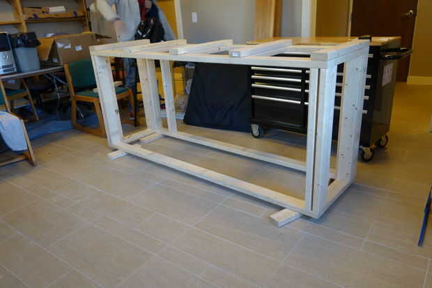 1) el proceso se inició mediante la creación de un marco de madera de 2 x 4, usando métodos muy similares en estructura a la pared de una casa.