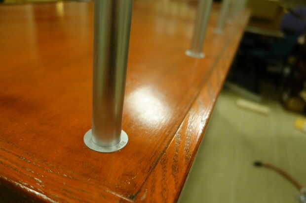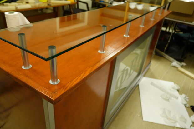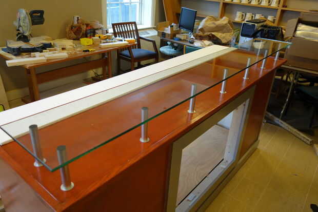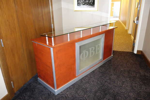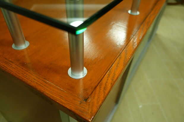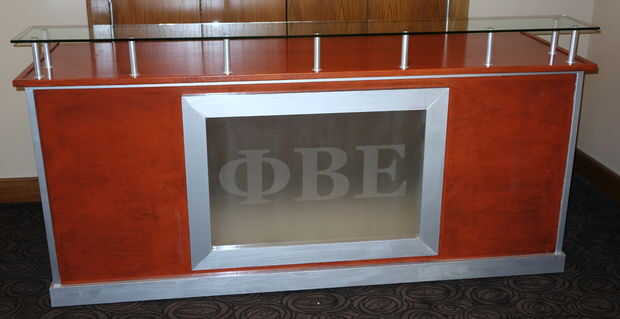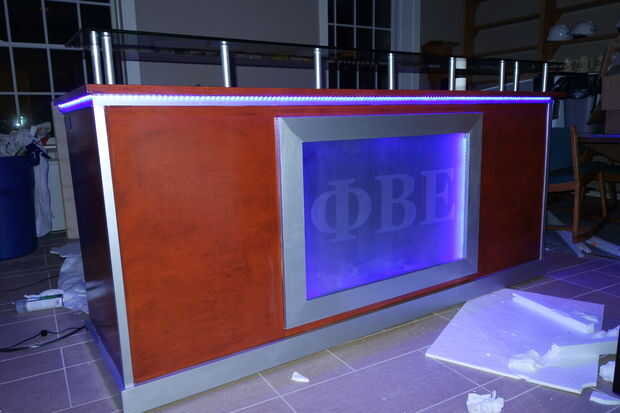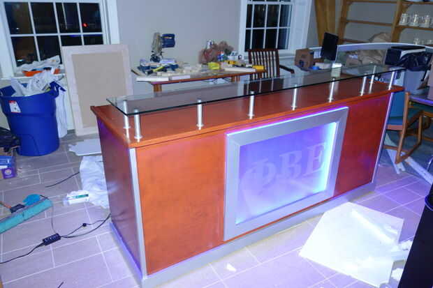 6) comience a añadir soporte para el vidrio superior. Hice las cubiertas para la base con las letras de la fraternidad grabado en ellos. Pies de goma fueron agregados a la parte superior para evitar que resbale.