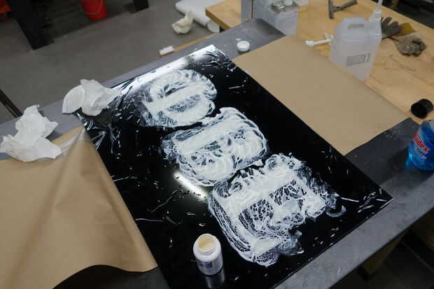 5) pintura moldear cualquier color que desee. Utilice cinta de pintor para sellar los bordes y mantener la pintura no deseada fuera de la mancha.