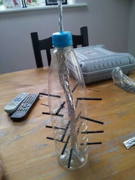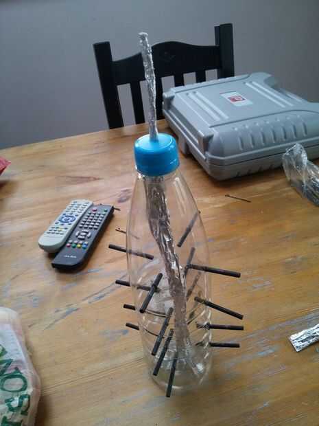 1. Enrollar un tubo de papel de aluminio unos centímetros más largos que la botella. Este es el terminal negativo (cátodo).