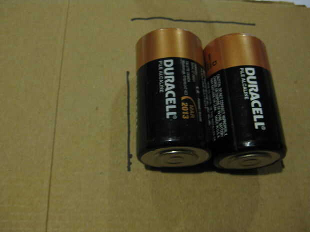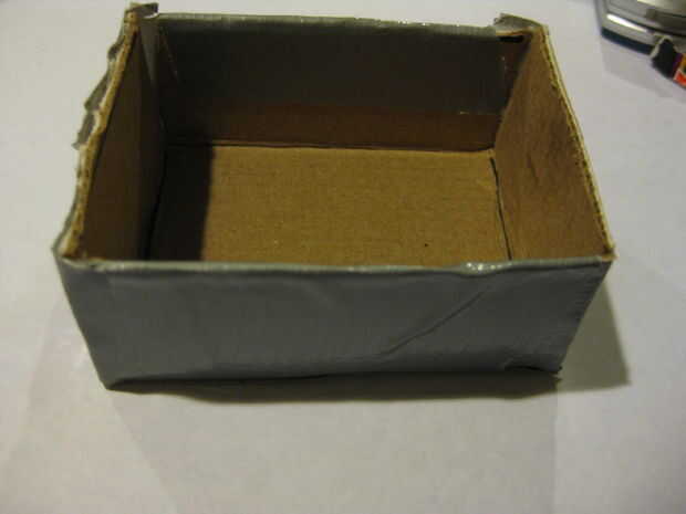 No es difícil hacer un cuadro. Simplemente averiguar qué tamaño caja que necesita contener dos células D (como se muestra en las fotos) y aplique cinta de conducto liberalmente. La caja será un paquete de baterías.