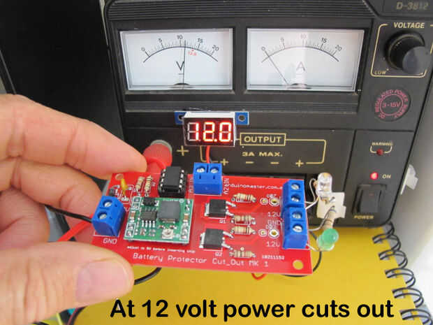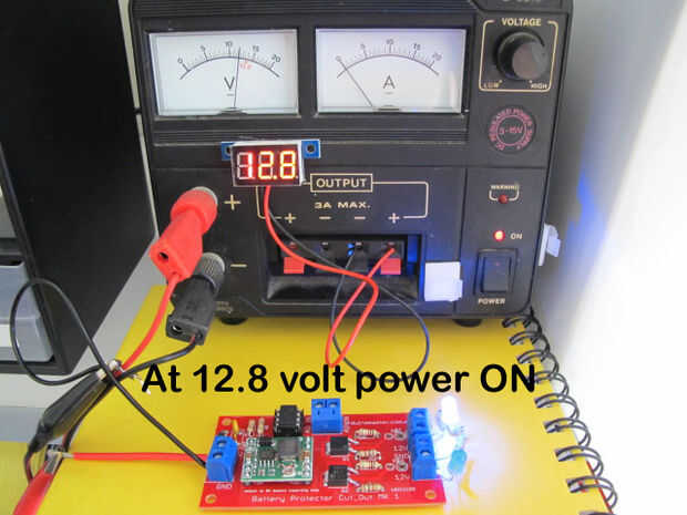 En mis fotos verás que 12,8 voltios el mosfet enciende la luz. Usé un LED con un resistor de 680 ohmios para demostrar.