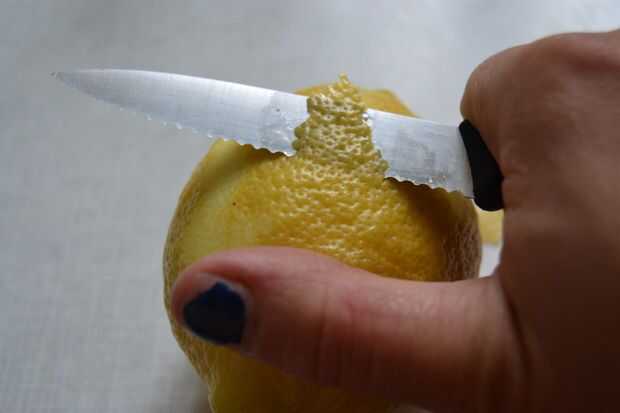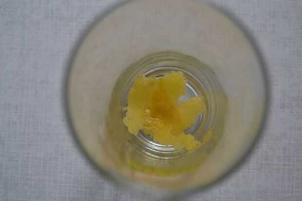 con un cuchillo, retire algunas rebanadas de la ralladura de limón y ponerlos en un glas longdrink. (sea cuidado de no cortar la parte blanca del limón, ya que es amargo)