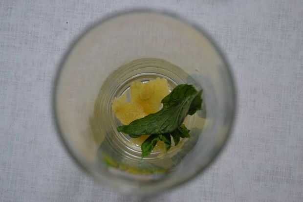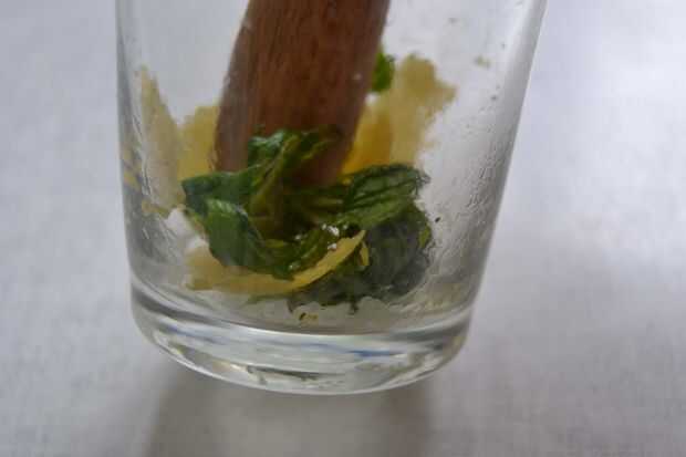 aplastar el limón y la menta con un machacador o algo similar. Esto hará que los aromas y aceites esenciales vienen hacia fuera.