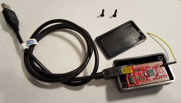 Uno de mis objetivos iniciales era que un simple plug & play interfaz en el lado de la PC. Por suerte, baja potencia laboratorio tiene justo lo que necesitaba. Se llama Moteino-USB y viene con un radio de RFM69xx adjunto y un puerto incorporado del USB. Este aparato encaja perfectamente dentro de un pequeño caso de proyecto de 1591 de Hammond.