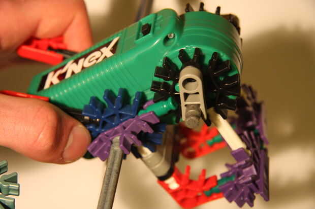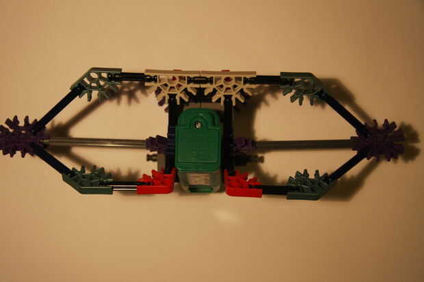 El motor puede ser cualquier motor, sino preferentemente este tipo (no los que tienen un rojo batterypack). En cuanto al árbol, es una barra de tamaño amarillo. Asegúrese de poner los conectores en ángulo de 90 grados!