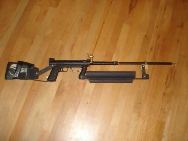 He creado un sencillo kit de conversión de Airsoft para cualquier lado o codo carga, arma de Paintball semiautomática. Usé una costumbre de Tippmann 98. Esta pistola de paintball es probablemente una de las armas más simple y más confiables por ahí, y te recomiendo tener uno de todos modos. Incluso si pasas los 140 dólares (Estados Unidos) para comprar uno nuevo, entonces hacer la conversión en él, todavía saldrá por delante del precio de un francotirador de Airsoft con un rendimiento comparable.