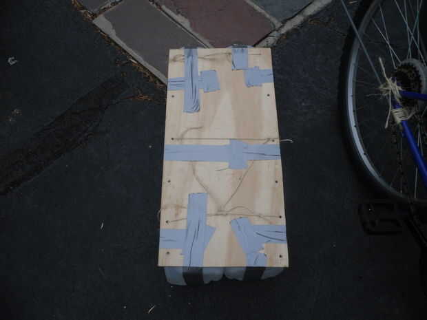 Para conseguir todos los materiales que necesitaba, mantuve barato. La moto me dio un amigo, pero siempre hay bicicletas baratos disponibles en ventas de garaje. He utilizado viejos postes de la carpa como apoyo. Cinta adhesiva para conductos y guita son relativamente baratos. Mi compra más grande era la madera que necesitaba, que vino a sólo $20. La mayor compra que hice (bueno era gratis así que no fue una compra) de las botellas estaba recibiendo desde el centro de reciclaje. Tener listo dumpster buceo!
