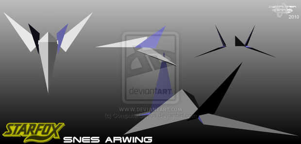 El Arwing en el Star Fox de SNES es el más simple, ya que era básicamente una forma triangular con más triángulos para alas y G-difusores, las vainas del motor azul que permiten las Arwings volar. No es el Arwing muchas personas reconocen fácilmente.