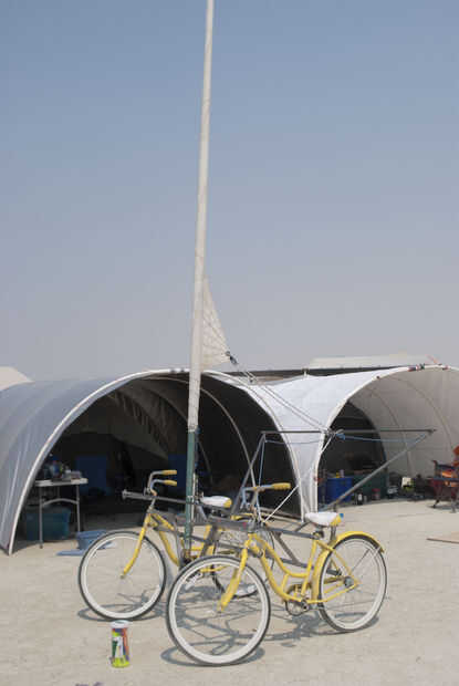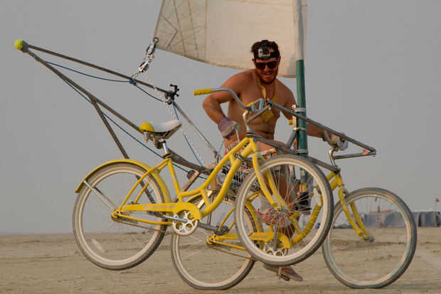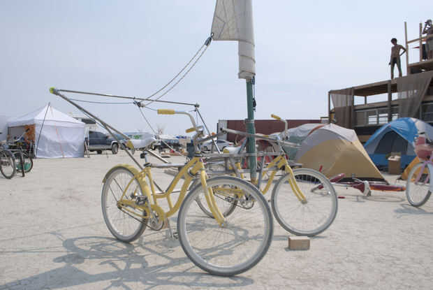 Esta es la historia de la bicicleta de la vela, una bicicleta Tándem de vela. Construido con tiempo y recursos limitados, en realidad trabajó bastante bien y me dio algunas ideas sobre cómo mejorarlo la próxima vez. Fue muy divertido para navegar y también muy divertido en bicicleta. De llegar un montón de gran alimentación de personas interesadas en el burning man. Lo vela por mí al atardecer en la playa abierta, era como estar en un desierto Marciano y una de las experiencias más increíbles de mi vida.