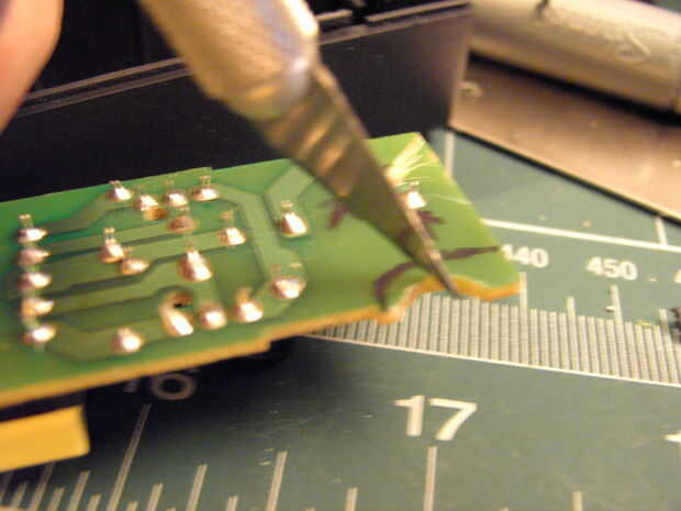 Muesca de la placa de circuito como se indica en las fotos, luego soldar los cables a la almohadilla y luego al switch. (ver foto para detalles)