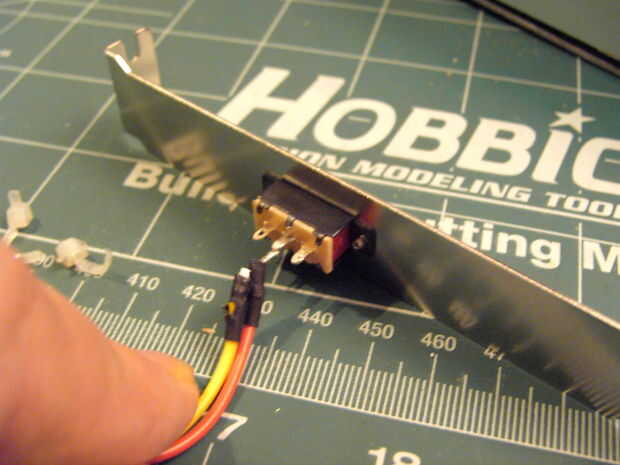 Tenga en cuenta las dos flechas. Usando el cable amarillo sobrante, preparar dos piezas que se van de las soldadura almohadillas al interruptor.