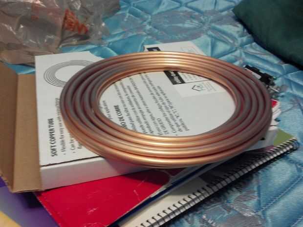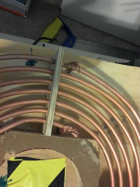 Me pareció más fácil de alimentar en cobre de un extremo y tire como muchos de los envoltorios como sea posible del otro. Simplemente alimentación o tirando una dirección sólo es bastante difícil y probablemente se romperá las piezas de madera contrachapada/llaves. Empuje y tire para hacerlo más fácil.