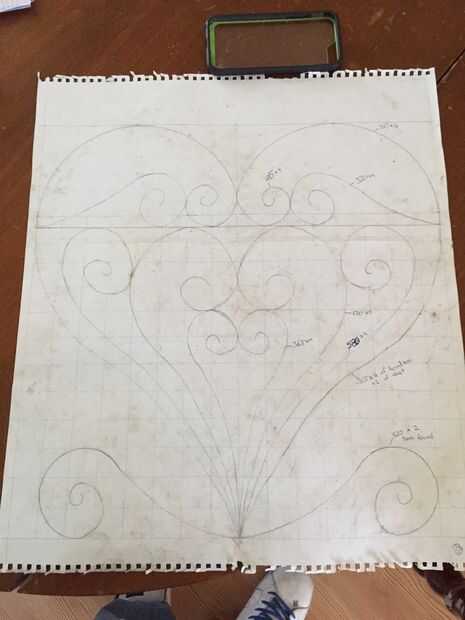 Dibujé el diseño en papel al tamaño real que iba a ser terminada. También usé el dibujo como una plantilla cuando doblaron todas las formas.