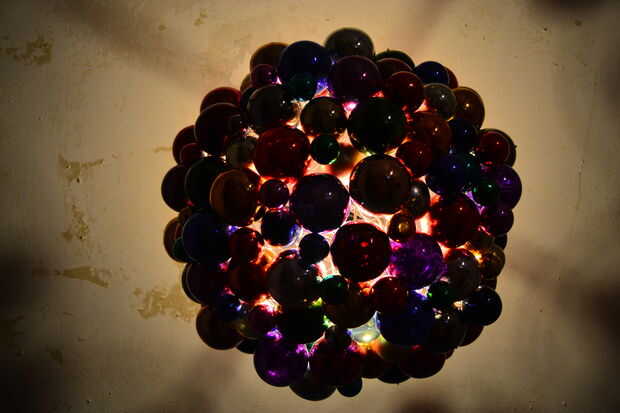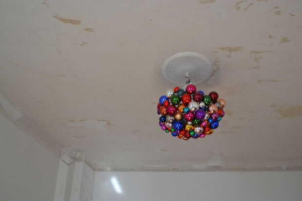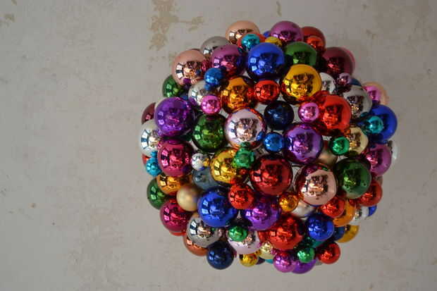 soy un gran fan de todas las cosas coloridas y brillantes - por eso (aunque yo no soy realmente una persona de Navidad) adoro ornamentos de la Navidad. pero tener ornamentos de la Navidad en su casa todo el año es tipo de ridículo. Así surgió esta "lámpara". es una increíble pieza de decoración por día y mira como precioso por la noche cuando la luz turnend en.