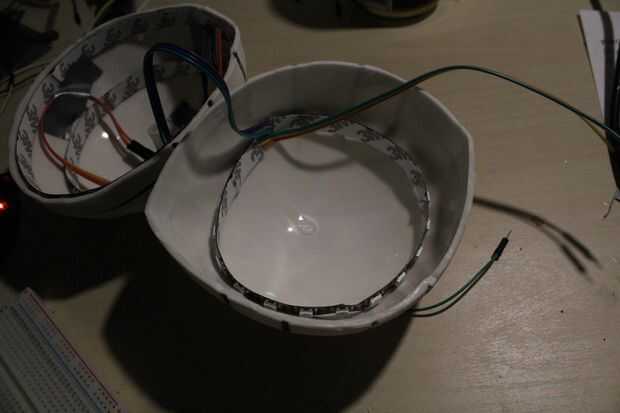 Anillo de deze vervolgens de Plak en de andere helft van de bal. Plak deze op dezelfde hoogte als de andere kleine ring. Zorg ervoor dat alle ledjes goed gran zitten.