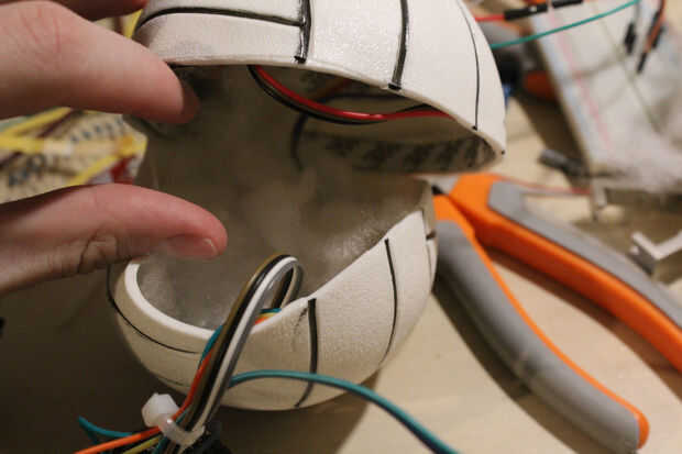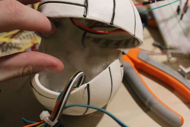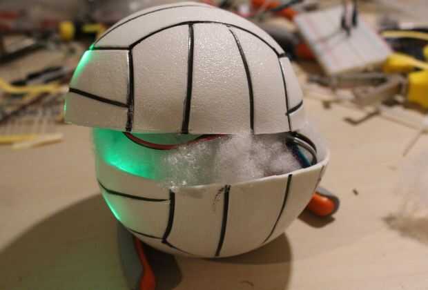 Doe een beetje kussenvulling en de bal en pierna daarom de electrnoica. Vul vervolgens de resto ook met kussenvulling. Beter te veel dan te weinig.