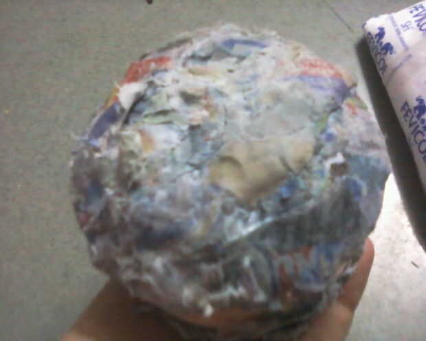 Haz tu lata pequeña y tienes que (newspaper(piece) y pegamento.) hacer palo de lata.