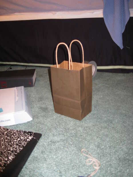 -Un bolsa de papel pequeña, como las de las tiendas que venden cosas como jabones y ponen en las bolsitas.