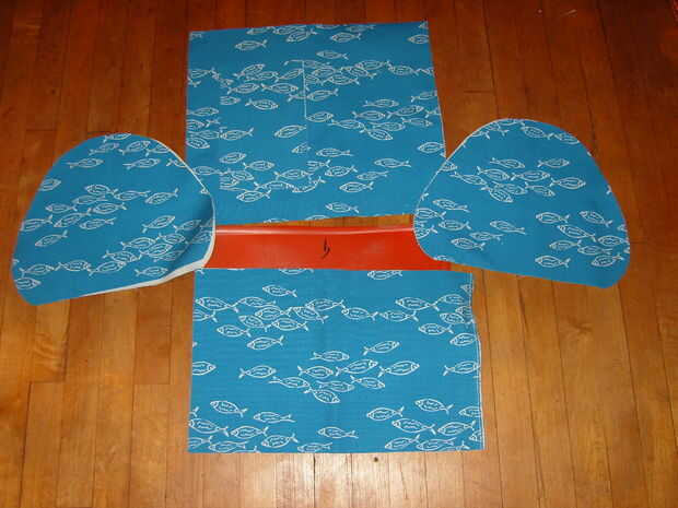 Para cortar las piezas, dibujar (directamente en el tejido es fino, o en un pedazo de periódico si lo prefiere) una línea recta como la anchura de su plástico pieza más una pulgada de margen de costura. Se trata de la parte inferior. Ahora dibuja los lados y la parte superior como parte de un círculo, u otra forma bulgy - me gusta hacer ligeramente triangular - en un tamaño que se ve como una buena para sus necesidades. Medir la circunferencia en la mitad de una pulgada en el borde (para costura!) y escriba como usted necesitará calcular los tamaños de la pieza de lado de él. Mina fue unos 40"(precisión de pulgada es suficiente).