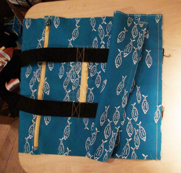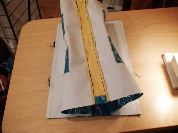 Coser cada lado de la parte inferior de uno de los lados, teniendo cuidado de coser a lo largo de las líneas de costura que ya cosido en los inferiores. Realmente no importa qué lado de las piezas de la parte inferior coser, pero para los lados, asegúrese de que el lado derecho es hacia los inferiores. Utilizando el mayor atascamiento de costura, se unen las costuras.