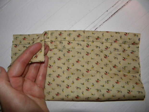 Luego, doblar la tela en dos para que las costuras fuera y los canales alineados uno encima del otro.