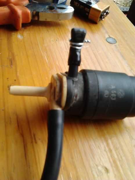 Primero cerré por un tubo doblado y asegurado con alambre uno de dos salidas, ya que, como ustedes saben este tipo de bomba tiene dos salidas para alimentar tanto los cristales de la máquina en marcha ahora una ahora otra dependiendo de la polaridad de la fuente de alimentación.