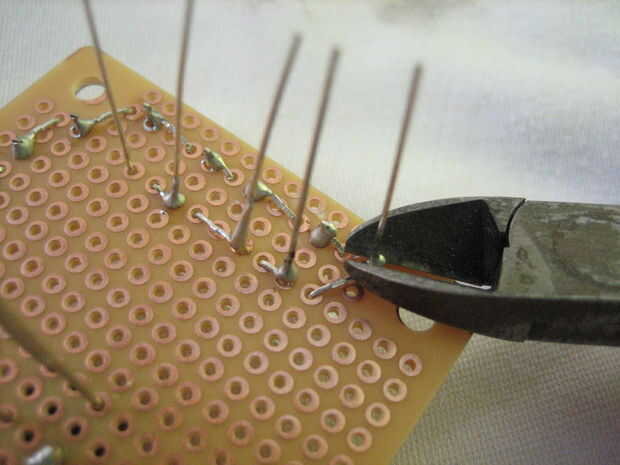 5. snip -Clip el exceso conduce, asegurándose de ser suave con las juntas de soldaduras.