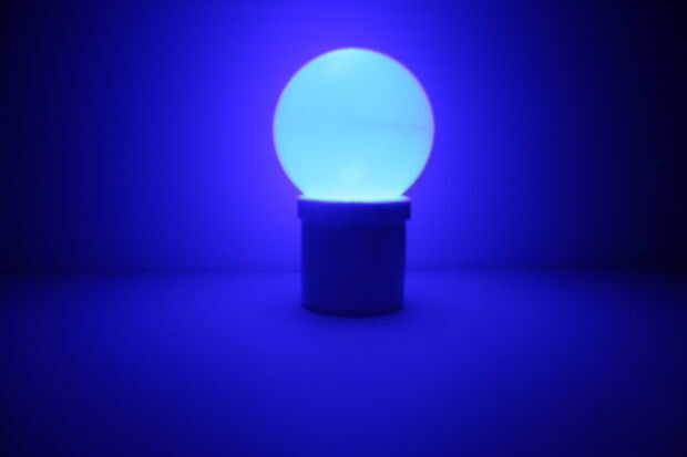 Utilizamos a la izquierda sobre el trozo de tubo de PVC para colocar la "bombilla" en. Puede no parecer lo que tanto en la imagen pero realmente parece una viejo regular bombilla (incandescente). Asegúrese de que el imán y la batería en el PVC y su lugar, si lo desea.