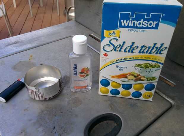 Mi método favorito es desinfectante de la mano y una pequeña cantidad de sal de mesa. Asegúrese de que el desinfectante de la mano es alcohol de base, generalmente metanol.