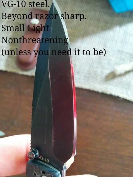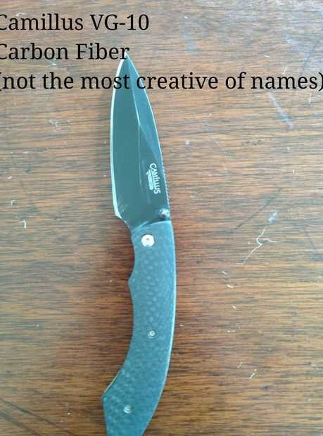 Sin embargo la otra escuela de pensamiento es similar de las cámaras, el mejor cuchillo es que usted tiene con usted. Esto es eran las carpetas están en sus propio. La rata-7 es ideal para una situación de supervivencia, pero su no muy conveniente transportar o almacenar. Un cuchillo plegable puede hacer apenas sobre cualquier cosa que una hoja fija puede mientras estás más cuidado mientras lo hace. Mi elección para una carpeta accesible y de alta calidad es el Camilo VG-10 fibra de carbono (si eso es lo que su llamado). Tiene muy alta calidad de acero (japonés VG-10) y una sensación agradable y mira, también no rompa el Banco en alrededor de $60 en línea.